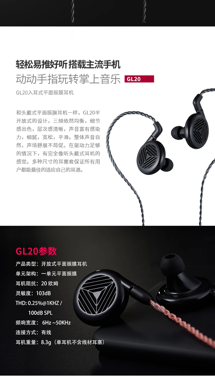 Gold Planar Gl20 Planar Magnetic Hifi In Ear Earphone For Audiophiles Musicians Shopee Malaysia